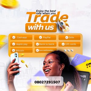By admin December 21, 2025 No Comments Enjoy the best rafe when you Trade with us Cashapp PayPal Zelle Apple pay Bank to bank Gift cards Bitcoin Sure confirmation…. edit 06 Contact @ 08027291507 redit rd Cre